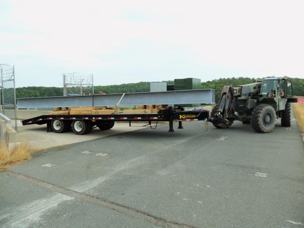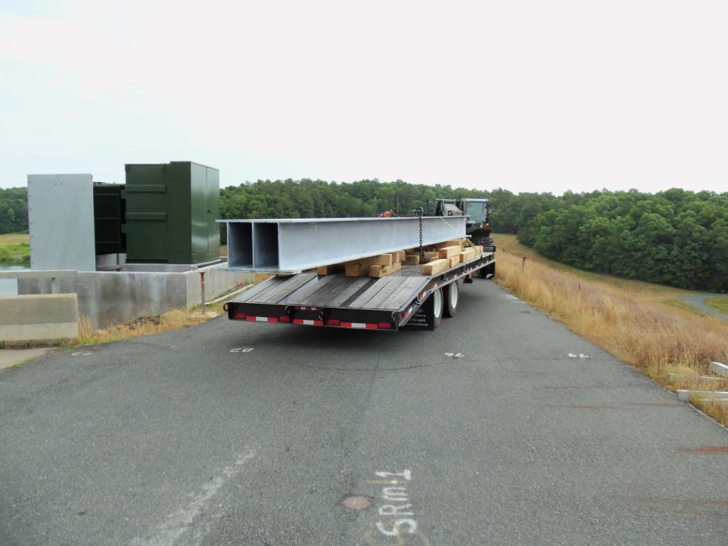 TRANSPORTING DOWNSTREAM OUTRIGGER SUPPORT BEAMS USING EQUIPMENT TRAILER AND 10K MLULL |