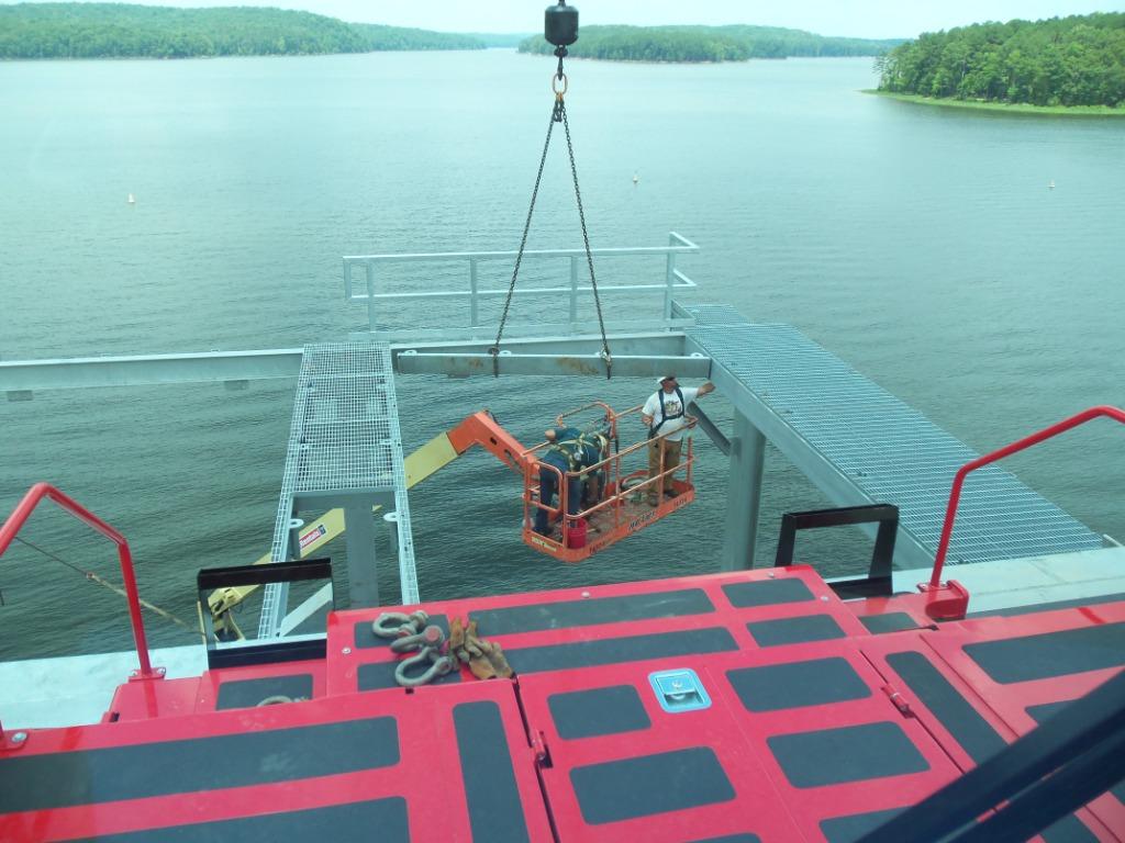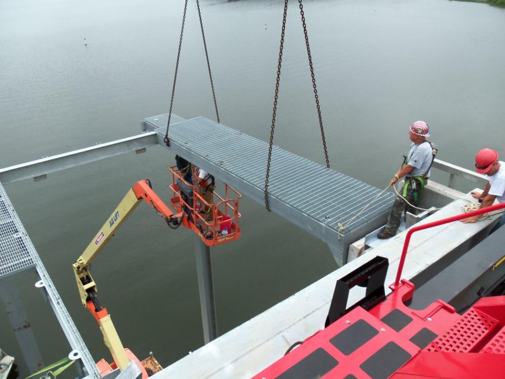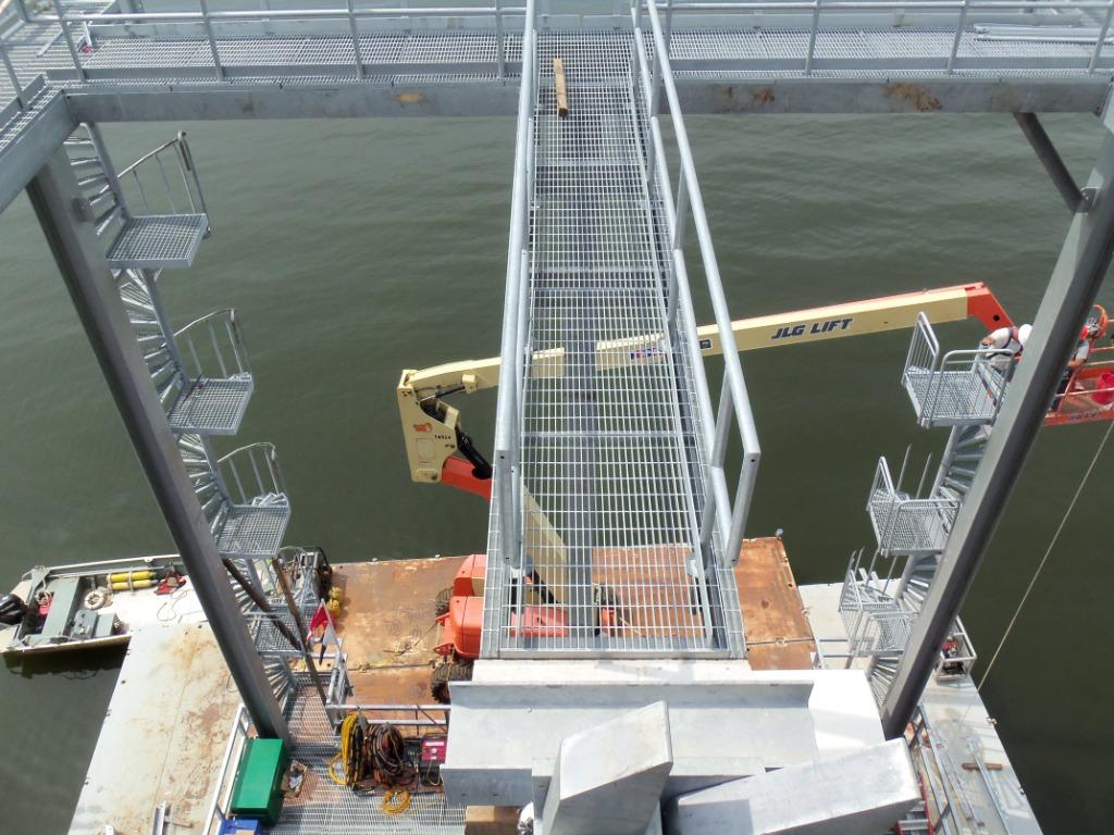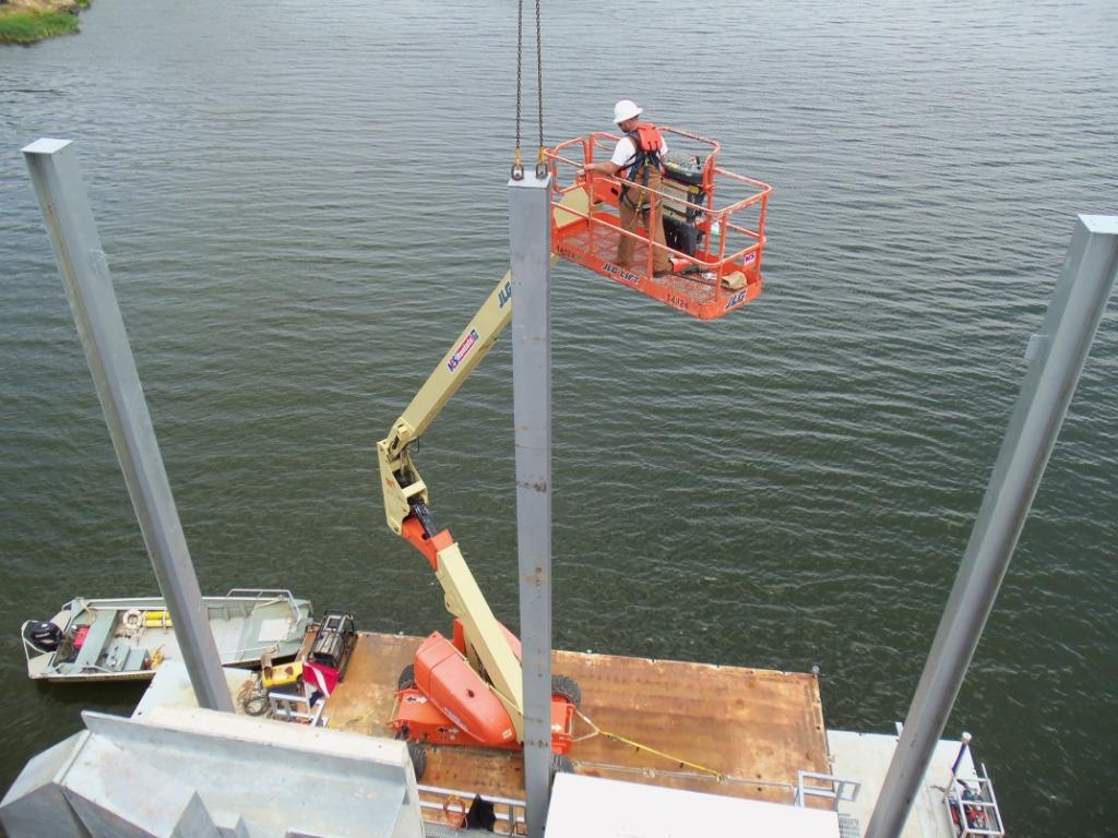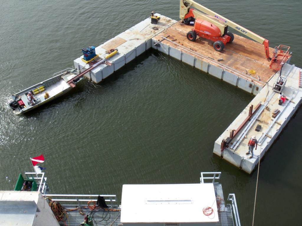 BARGE WITH LIFT REPOSITIONED ON NORTH END OF TOWER |
