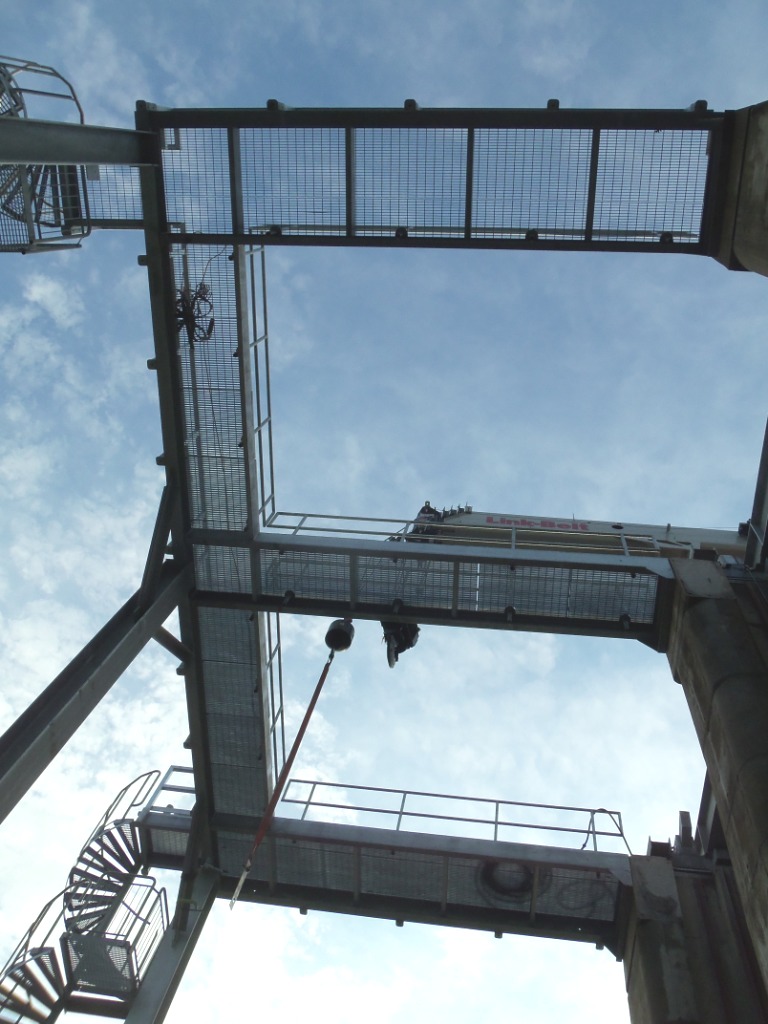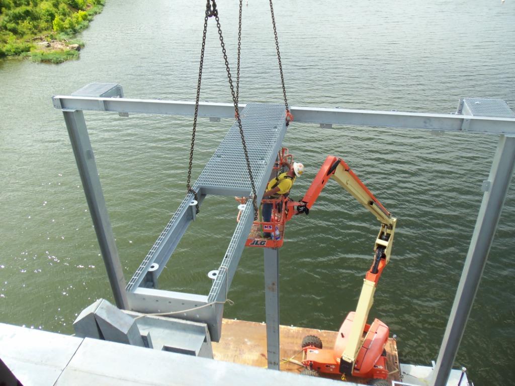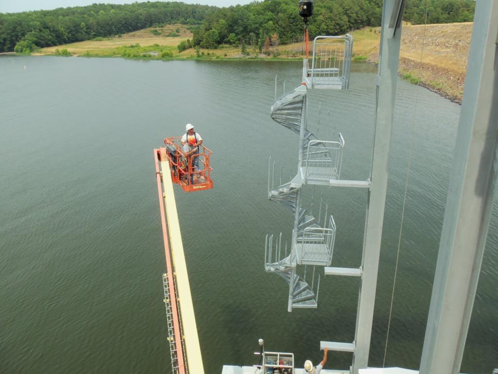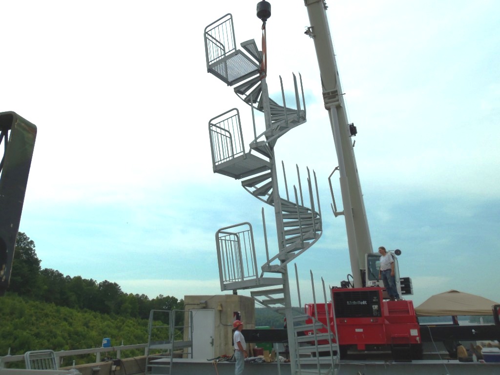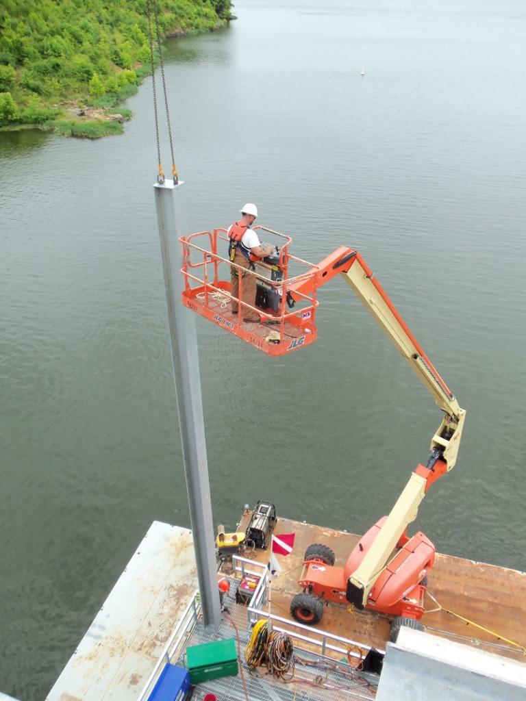 BARGE WITH LIFT REPOSITIONED ON NORTH END OF TOWER |